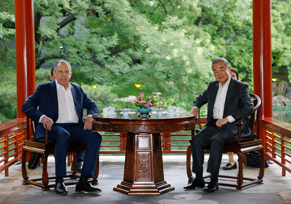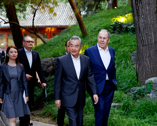 2025年7月13日,中共中央政治局委员、外交部长王毅在北京会见俄罗斯外长拉夫罗夫。