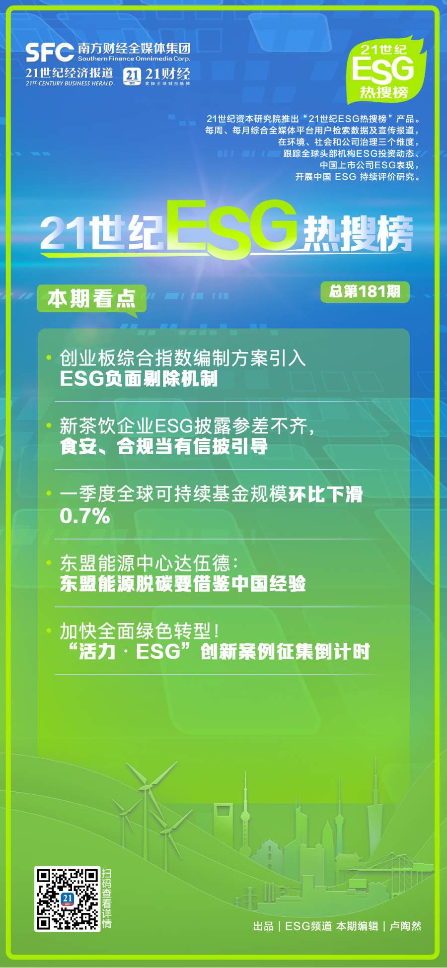 2025年是我国“十四五”规划收官与“十五五”规划谋篇之年,也是我国“双碳”目标提出的五周年。由南方财经全媒体集团、21世纪经济研究院发起的21世纪“活力·ESG”创新案例征集(2025)正在火热进行中。21世纪“活力·ESG”创新案例征集(2025)进入关键倒计时,申报通道将于2025年7月30日正式关闭,并将于2025年8月在上海举办入围发布仪式。诚邀具有远见卓识的企业、机构及个人提交ESG实践,共襄盛举,定义ESG未来!