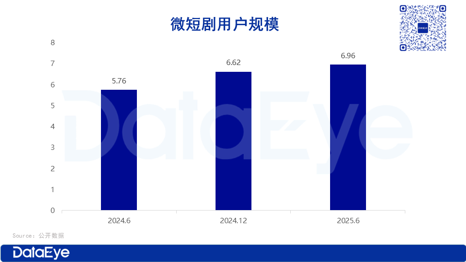 7月8日,DataEye《2025H1微短剧行业数据报告》指出,2025年微短剧投流规模将达约423亿元,同比增长28%,核心原因是端原生模式的爆发式增长和免费模式的大幅激增;免费微短剧市场规模约350亿元,同比增长40%,市场份额将达到55%左右。截止6月,微短剧用户规模已达6.96亿,半年增速达5.1%。