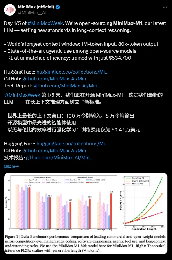 在今年6月的技术发布周上,MiniMax连续五天甩出覆盖底层模型、多模态技术、通用智能体等领域的五款重磅产品,包括全球首个开源混合架构推理模型 MiniMax - M1,系统展现了“模型—多模态—应用”一体化技术路线。