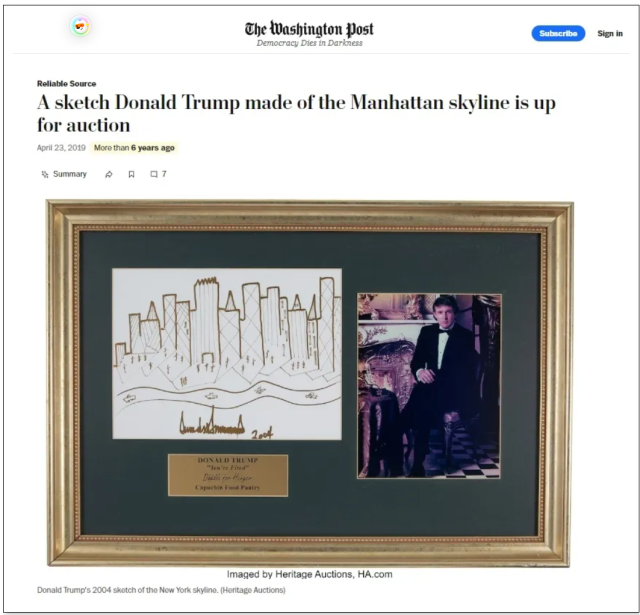 但,《华盛顿邮报》很快又打脸,20年前,特朗普你就画过曼哈顿的素描,当时还拍卖了几万美元。
