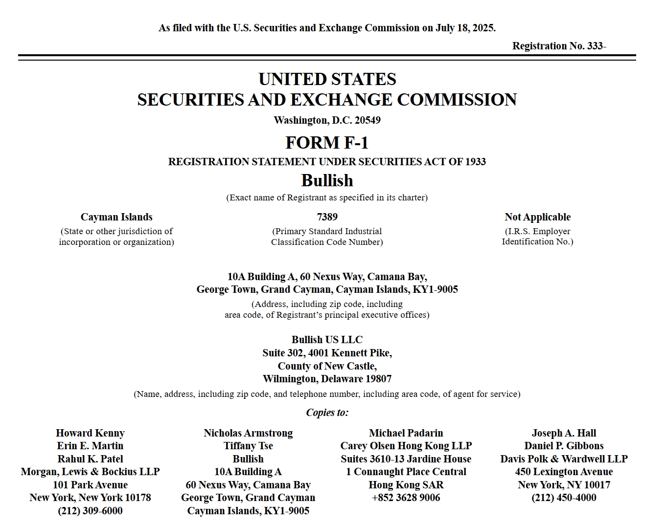 Bullish此刻提交IPO申请,似乎也有趁着美国加密货币立法热度上市的想法。