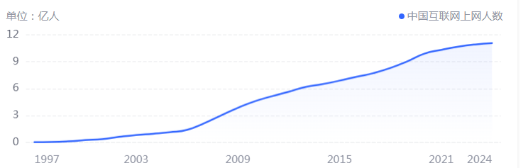 下面是中国互联网网民规模的曲线图。
