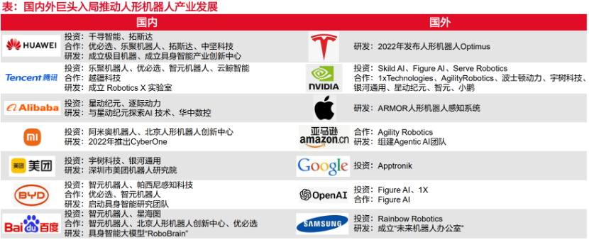 东海证券指出,国内外巨头的技术竞争与生态构建将加速商业化进程,人形机器人产业已进入“黄金窗口期”。国内外巨头的纷纷入局,不仅为人形机器人领域注入了大量资金与资源,加速了行业的技术进步与成熟,还推动了产业链的标准化和批量化发展,促进全球产业链的联动,使得人形机器人产业迎来了重要的转折点和变革机遇。