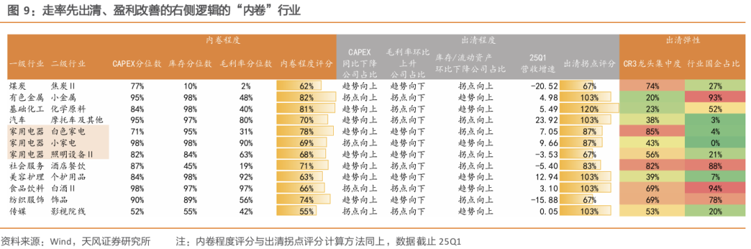 第二类走率先出清、盈利改善的右侧逻辑,内卷程度已经得到一定改善,行业业绩能见度较高。典型为家电、化学原料等。