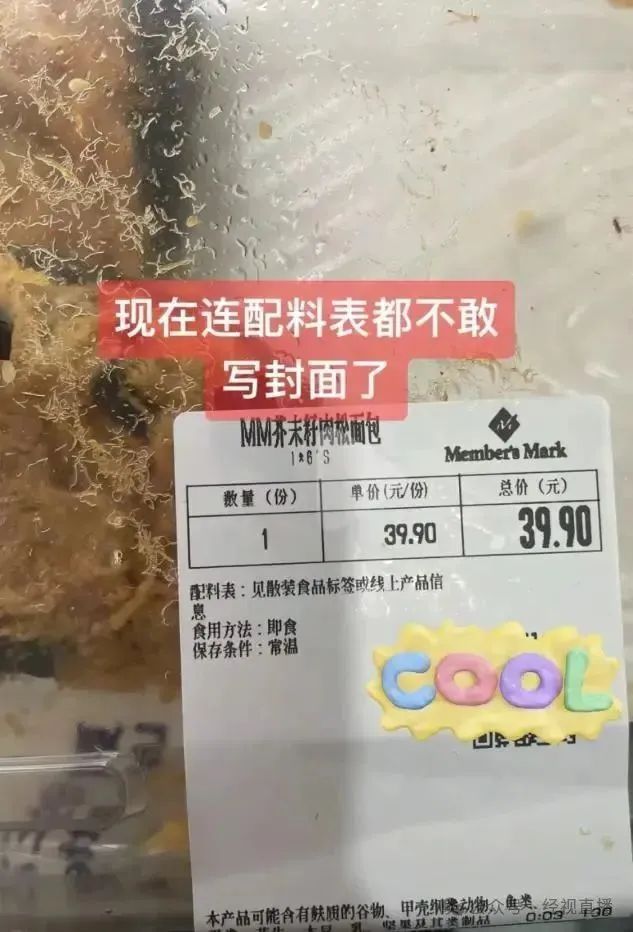7月21日,有网友发帖称,山姆会员商店的MM芥味籽肉松面包,以前的外包装上标注了配料表,现在改用新配方后,线下售卖的该产品的外包装上,配料表都被隐去了,仅标注:配料成分见散装食品标签或线上产品信息。