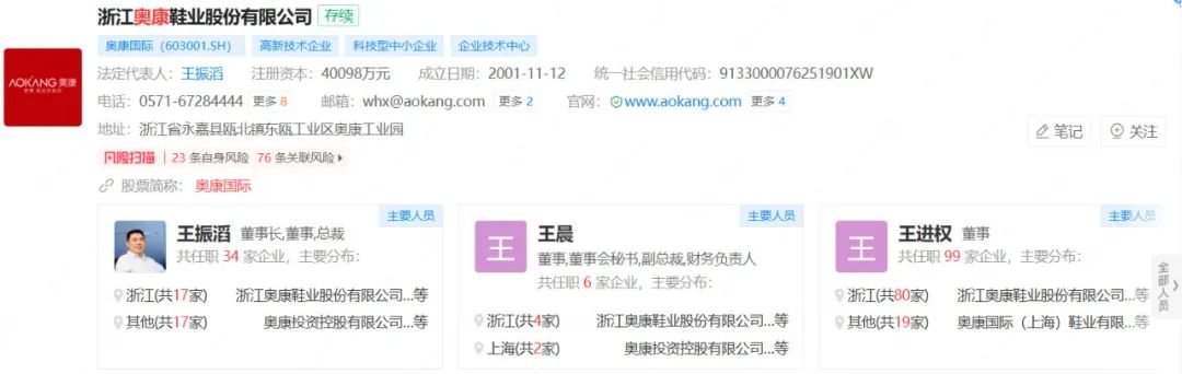 值得一提的是,王振滔在去年卸任奥康国际董事长一职,他的兄弟王进权也辞去公司董事兼总裁的职位,王振滔之子王晨代职。