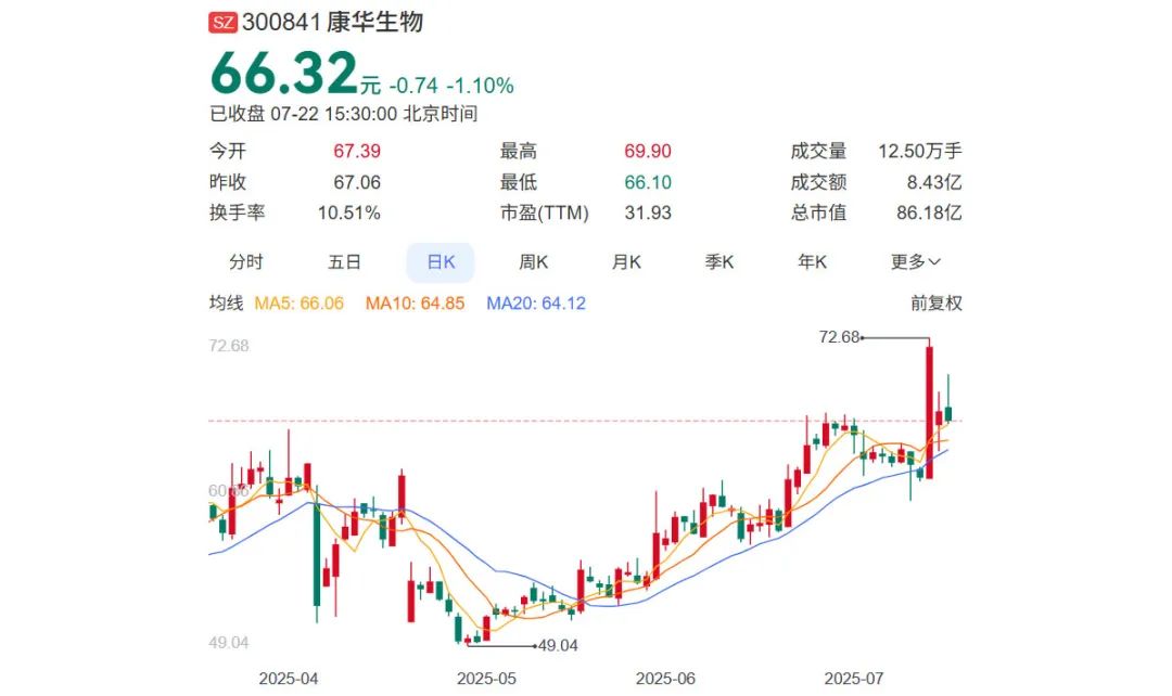 7月20日晚,康华生物发布公告,控股股东、实控人王振滔及其一致行动人,将所持股份转让给上海万可欣生物,交易价格合计18.5亿元。