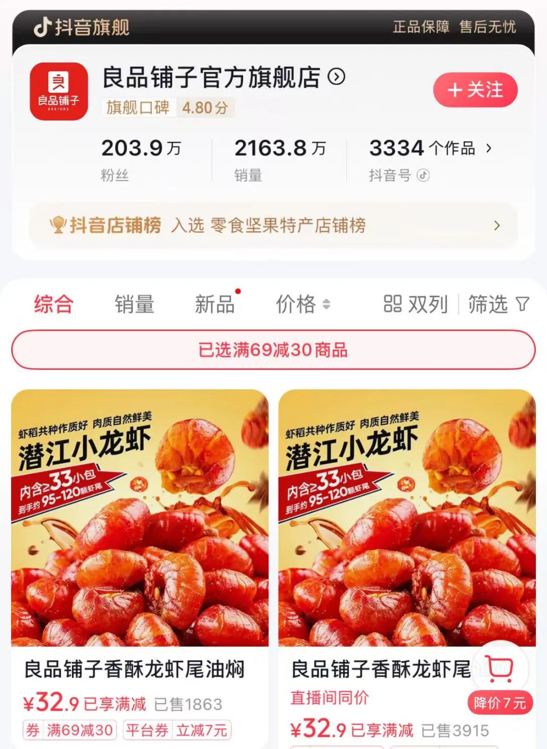 如今,点开良品铺子的直播间或线上店铺,不仅可以看到小龙虾、咸蛋,还有艾灸颈贴、眼罩等等。