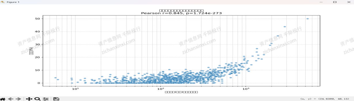 通过散点图(成交金额对数坐标)可见,溢价率随成交金额呈现一定程度上升趋势,部分大额交易对应较高溢价率。相关系数0.315,表明两者存在中度正相关,且统计显著(p < 0.001)。溢价率集中分布在0%-30%,符合市场合理估值区间。