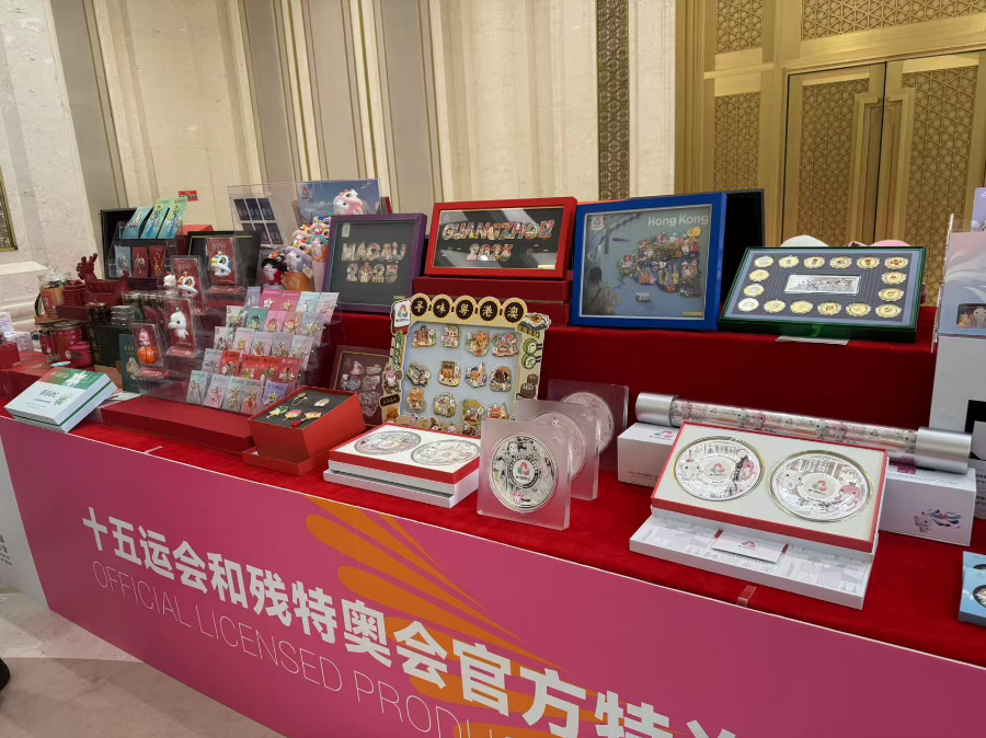 7月25日下午,国务院新闻办公室举行新闻发布会介绍第十五届全国运动会筹办情况。在发布厅前厅的十五运会特许商品展示区中,冰箱贴、徽章、毛绒公仔等各式各样的特许商品吸引记者们驻足感叹:“这些特许商品的展示让大家感受到粤港澳合办赛事的排面!”