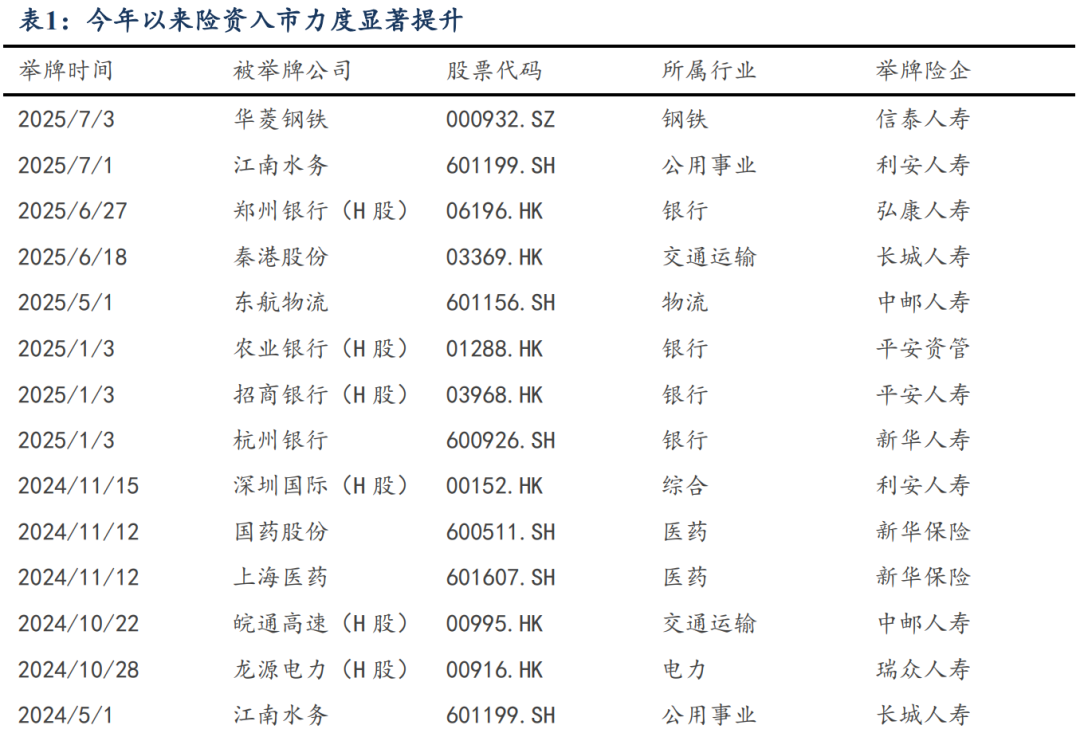 保险资金:6月以来举牌明显加快,2025年以来半年举牌数接近2024年全年,主要集中在大金融板块,保险资金权益仓位有所提升。