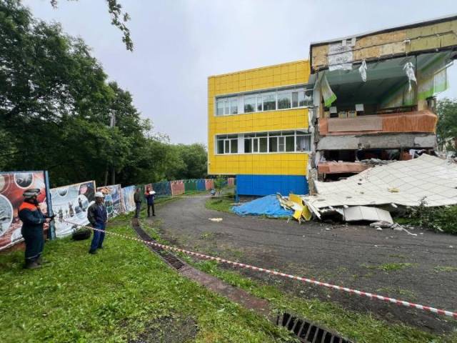 这是7月30日拍摄的俄罗斯堪察加彼得罗巴甫洛夫斯克市在地震中受损的幼儿园。图源新华社