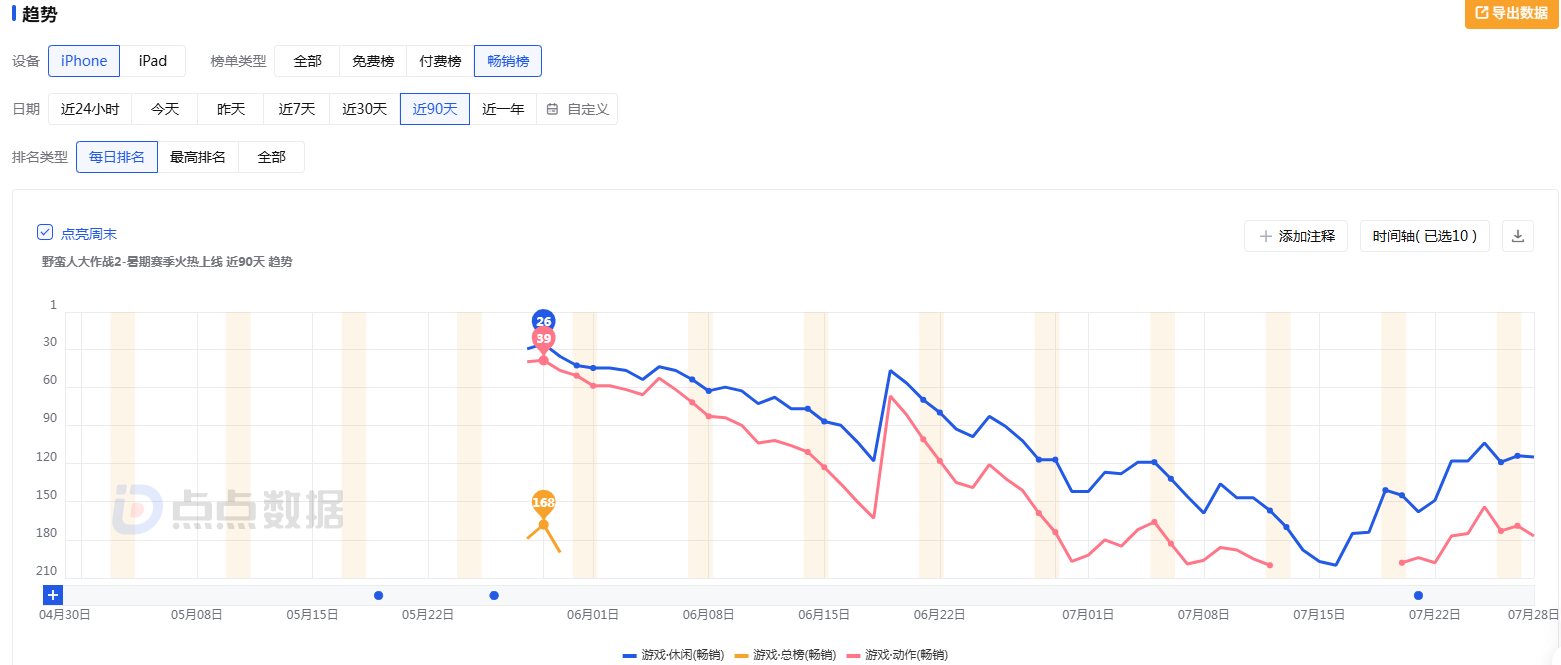 图5:《野蛮人大作战2》上线以来iOS平台畅销榜排名表现