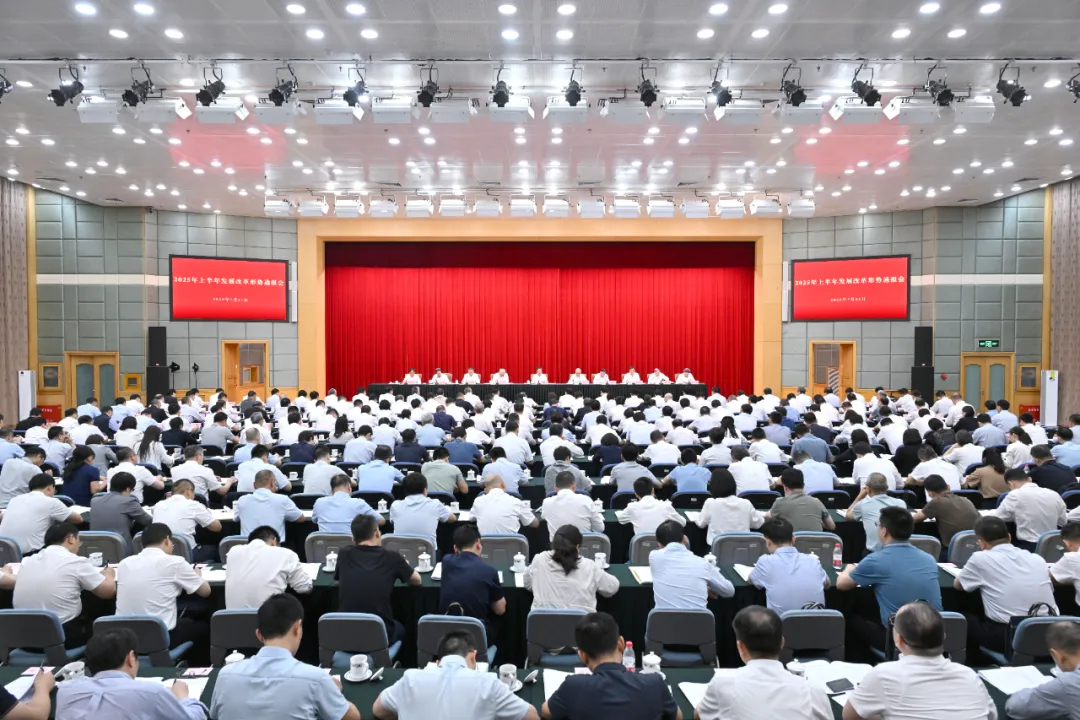会议指出,今年以来,在以习近平同志为核心的党中央坚强领导下,我国经济运行稳中有进,高质量发展取得新成效,主要经济指标表现良好,新质生产力积极发展,改革开放不断深化,重点领域风险有力有效防范化解,民生兜底保障进一步加强,我国经济展现强大活力和韧性。发展改革系统要深入学习领会中央政治局会议精神,充分认识上半年我国经济顶住外部压力、消化累积风险,增速在主要经济体中名列前茅,成绩来之不易。尽管当前我国经济运行依然面临不少风险挑战,但更要看到我国经济基础稳、优势多、韧性强、潜力大,长期向好的支撑条件和基本趋势没有变,支撑高质量发展的积极因素不断积累,完全有条件、有能力、有信心、有底气应对发展中的各种风险挑战,推动经济平稳健康发展。