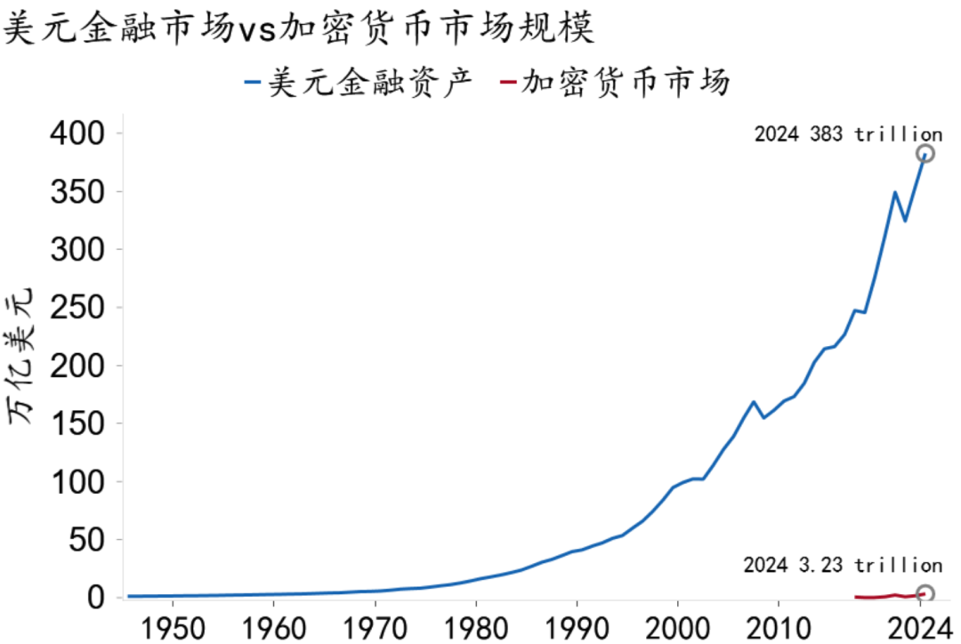 三是市场容量存在显著差距。数字货币的发展历程较短,当前市场规模仅$3万亿,相较$380万亿的美元资产存在质的差距(图10),难以形成有效替代。