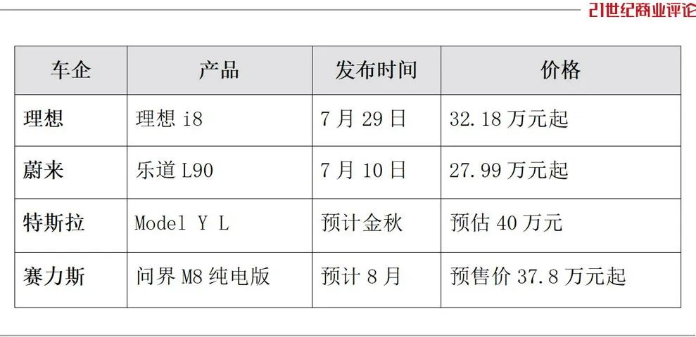 i8所在的纯电六座赛道,新势力品牌扎堆。前有低价的蔚来乐道L90,后有更贵的问界M8纯电版及特斯拉新车。