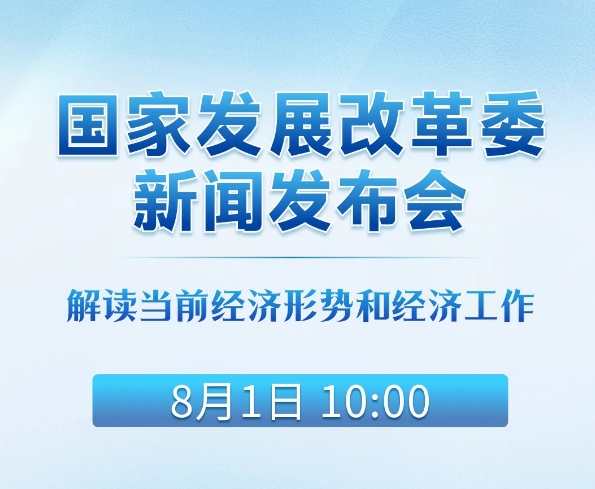 国家发展改革委定于8月1日(星期五)上午10:00,在国家发展改革委中配楼三层大会议室,召开国家发展改革委新闻发布会,解读当前经济形势和经济工作。