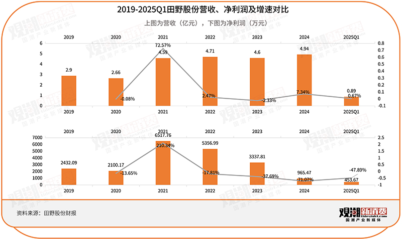 在上市后的2023年、2024年,在营收保持个位数变幅的情况下,田野股份的净利润连续降至3000余万元、900余万元。新式茶饮一套降价组合拳,后坐力太强。