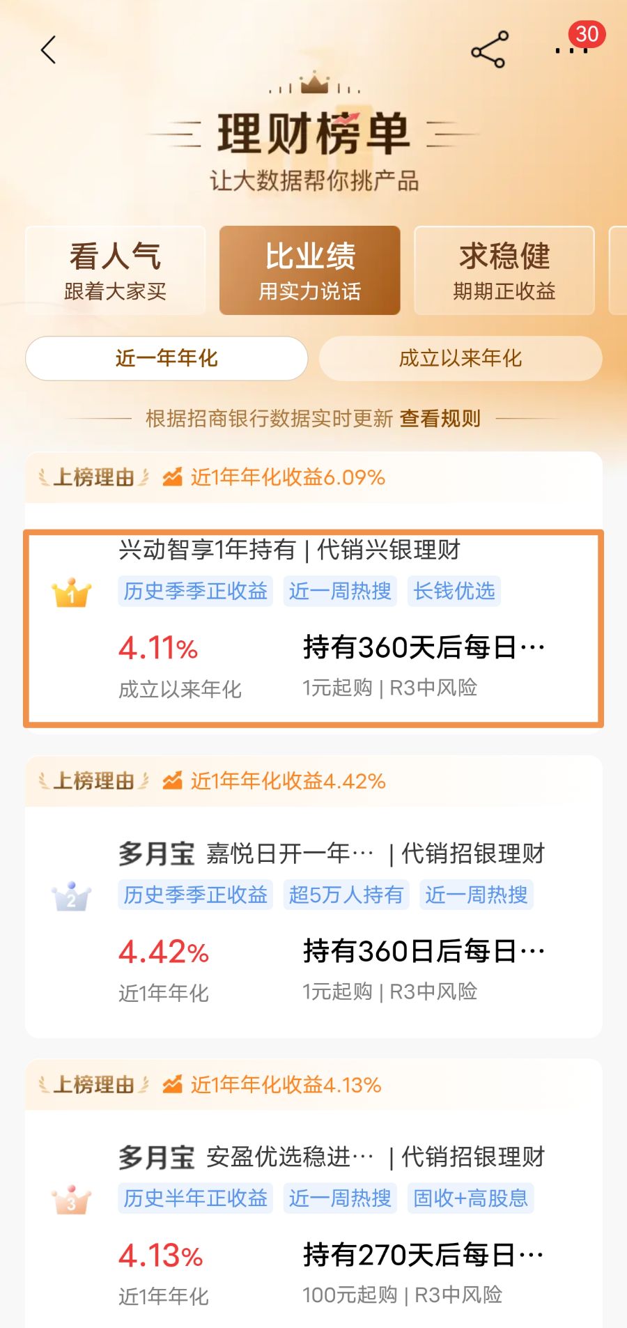 21世纪资管研究院研究员 唐曜华 实习生 姜博文 近期股市突破3600点后小幅震荡,债市在上周调整后本周略有反弹。部分含权比例10%左右的“固收+权益”类产品近期收益表现亮眼。理财通评评“理”第45期继续测评银行热销产品,本期测评招行APP业绩榜排第一的产品:兴银理财丰利兴动智享1年持有期4号A。