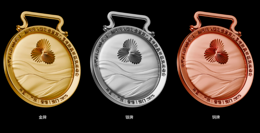 奖牌顶端的挂钩,匠心独具地采用了岭南特色“镬耳屋”造型,不仅是地域文化的精彩呈现,更蕴含着“拔得头筹”“建功立业”的美好寓意,为每一位奋勇争先、挑战自我的运动员送上最深切的祝愿。奖牌正面,精心镌刻的连绵海浪纹,象征着大海的广阔与包容,传递着残特奥会汇聚万众一心、众志成城的力量,更代表着运动员们破浪前行、永不言弃的意志与激情。
