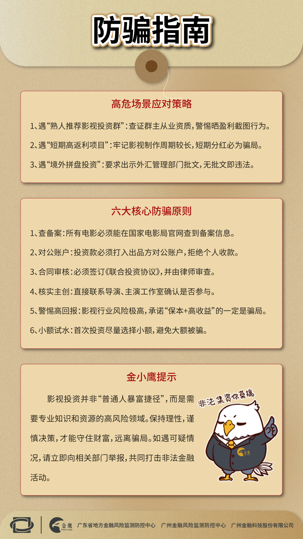 影视投资不是“普通人暴富捷径”,而是需要专业资源的高风险领域。这些陷阱往往披着“热门电影”“官方合作”的外衣,让人防不胜防。转发这组海报,提醒亲友: