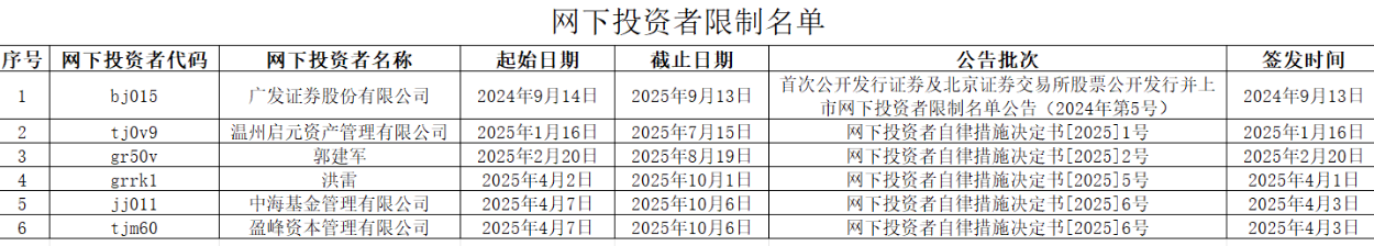据中证协信息显示,最新的网下投资者限制名单中还包括广发证券、公募中海基金以及私募温州启元资产和盈峰资本等机构。从《中国证券业协会网下投资者自律措施决定书》来看这几家机构具体被限制的原因,包括未审慎报价、未严格履行报价评估和决策程序、定价依据不充分、网下询价和配售业务制度不完善、通讯工具管控执行不到位等。