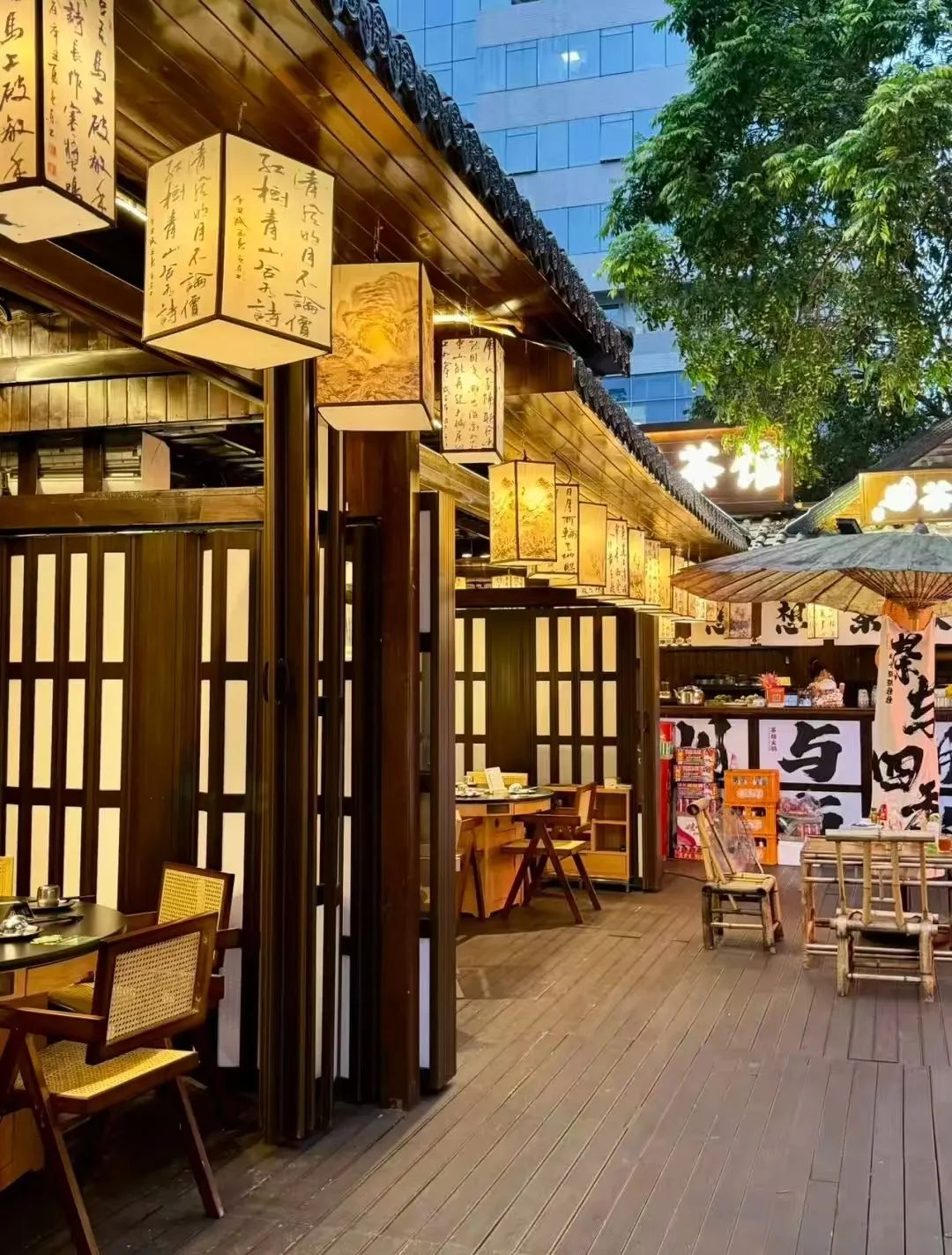 在装修上,这批网红茶火锅店为了打造与茶元素和茶文化适配的消费场景,店内的装潢一般都主打新中式茶馆主题风,融合了不少的茶馆元素。