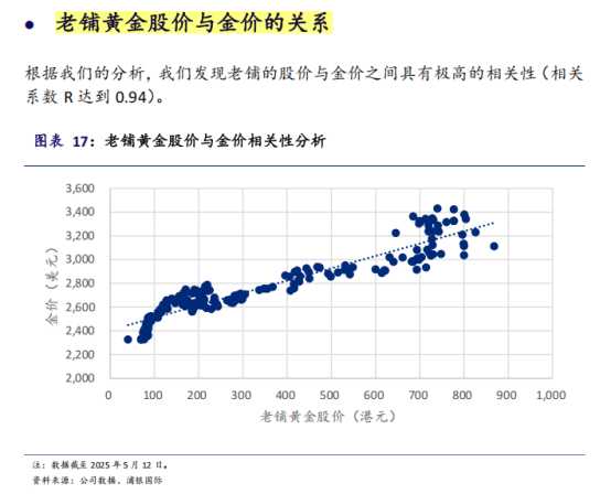 浦银国际证券认为,老铺黄金需要更长的时间来证明自身的品牌价值和产品价值能够脱离黄金本身的定价,从而真正被市场定义为黄金珠宝的奢侈品牌。在此之前,金价波动对老铺股价的影响将继续保持较强的关联性。