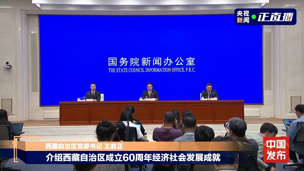 今天(8月5日)上午,国务院新闻办公室举行新闻发布会,介绍西藏自治区成立60周年经济社会发展成就。西藏自治区党委书记王君正在发布会上介绍,60年来,西藏经济社会发展各项事业取得全方位进步、历史性成就。