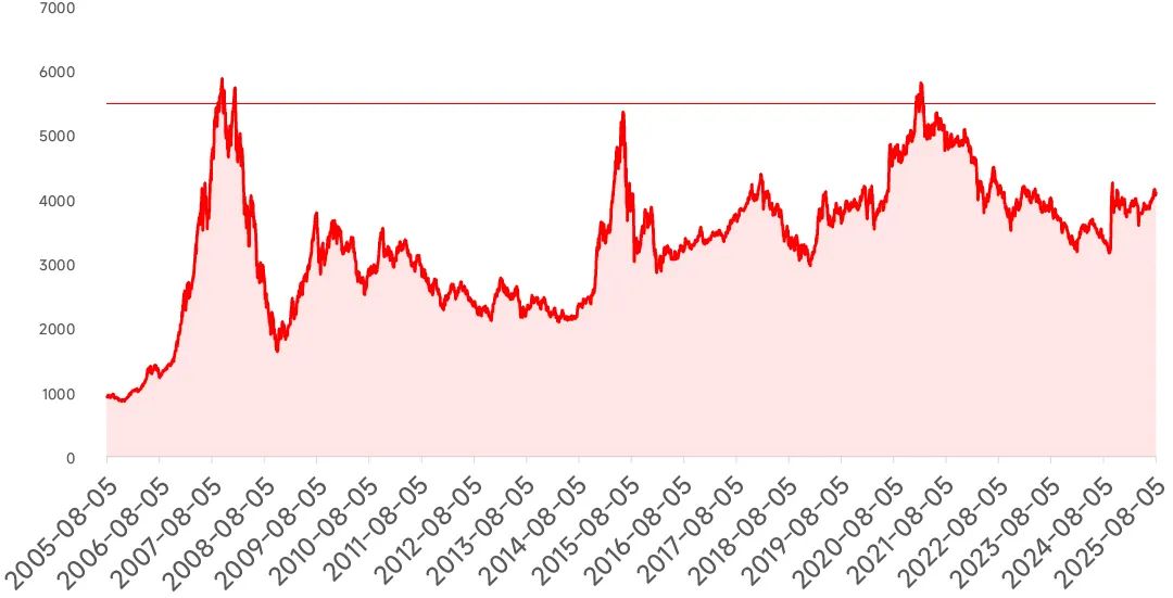 过往三轮超级牛市中(2005-2007、2014-2015、2019-2021),沪深300高点均达到5500点附近。