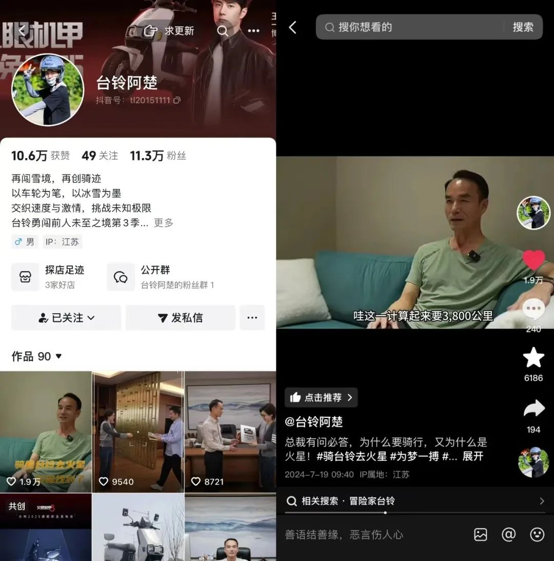他表示,台铃想做一个老板IP,用来宣传产品,就开设了这个账号。当然,台铃有更大的流量助力,王一博是其代言人。