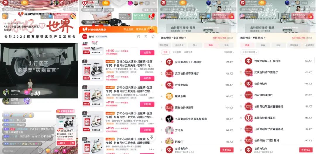 “每个月在抖音,有一个亿的销售(额)。”孙木楚表示,台铃拥有3万多家门店,以往跟用户没有任何连接,现在公司要做的,是“把电动车开进直播间”。