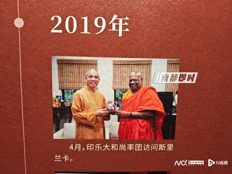 白马寺释源陈展馆内,印乐法师相关图片。南都N视频记者 马辉 摄