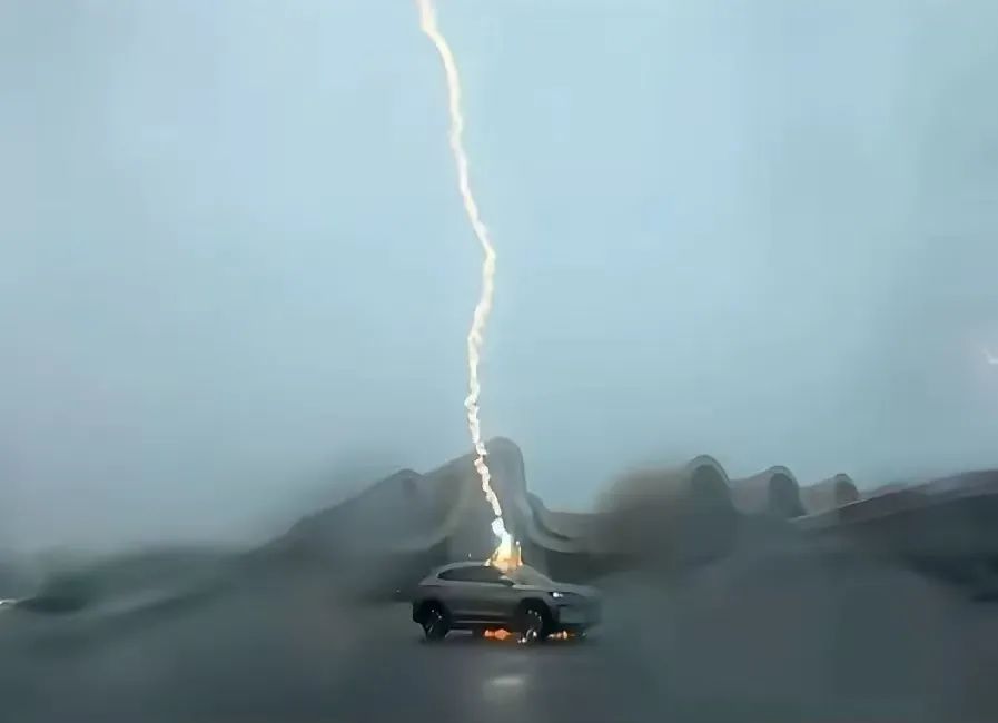 技术人员特别指出,车辆在遭遇首次雷击后瞬间自动启动断电保护功能,体现了较强的安全性能。