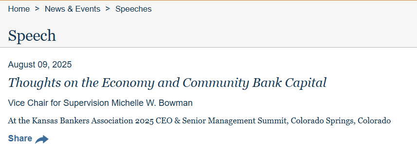 据证券时报,当地时间8月9日,美联储监管副主席米歇尔·鲍曼(Michelle Bowman)在最新的讲话中释放两条关键信息: 她支持今年进行三次降息,并将在10月9日主持一次社区银行会议 。