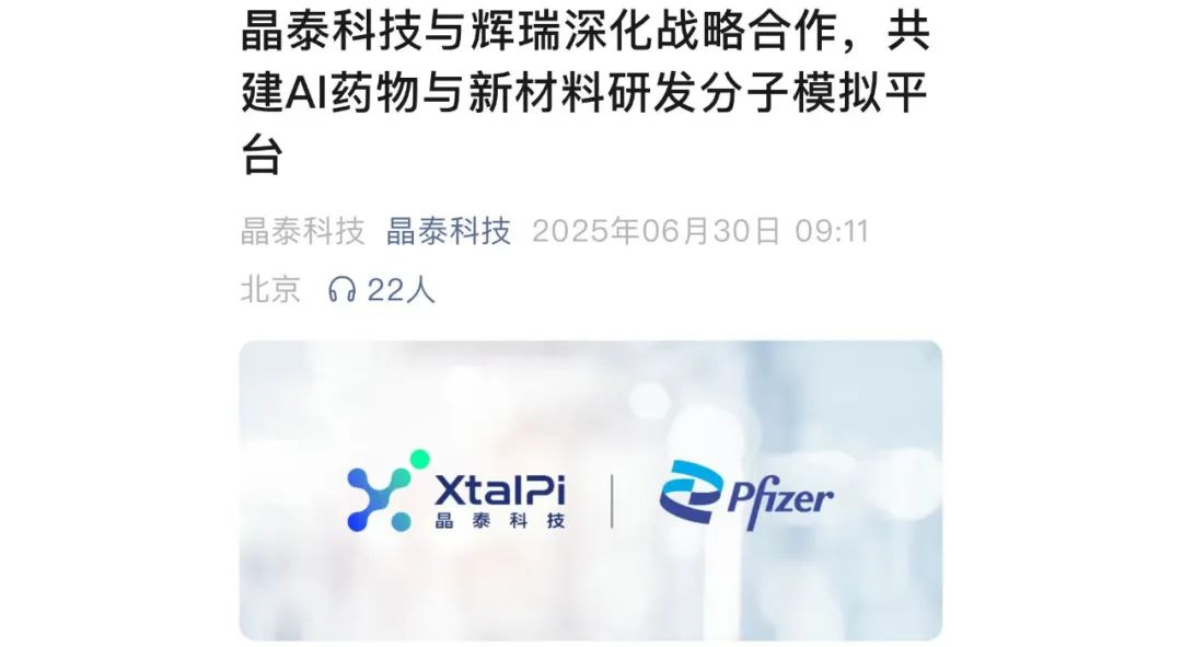 6月底,晶泰与辉瑞,扩大合作。双方将共建新一代药物研发平台,针对辉瑞专有的化学空间,开发精准预测模型。