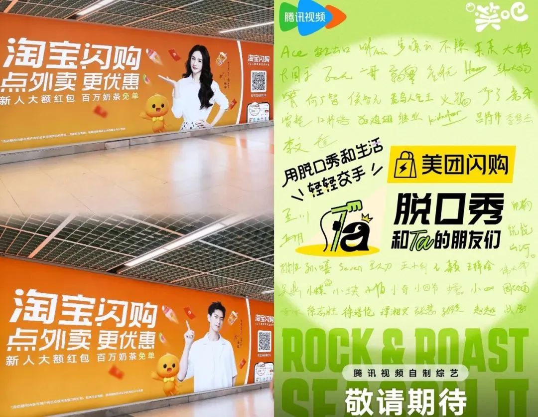 除了批量官宣庞大的代言人矩阵,平台更同步开启无死角的曝光攻势,从手机里的App开屏、热剧热综的片头广告、电影映前贴片,再到电梯广告、户外地标大屏…… 从线上到线下,构建起一张密不透风的推广网络。
