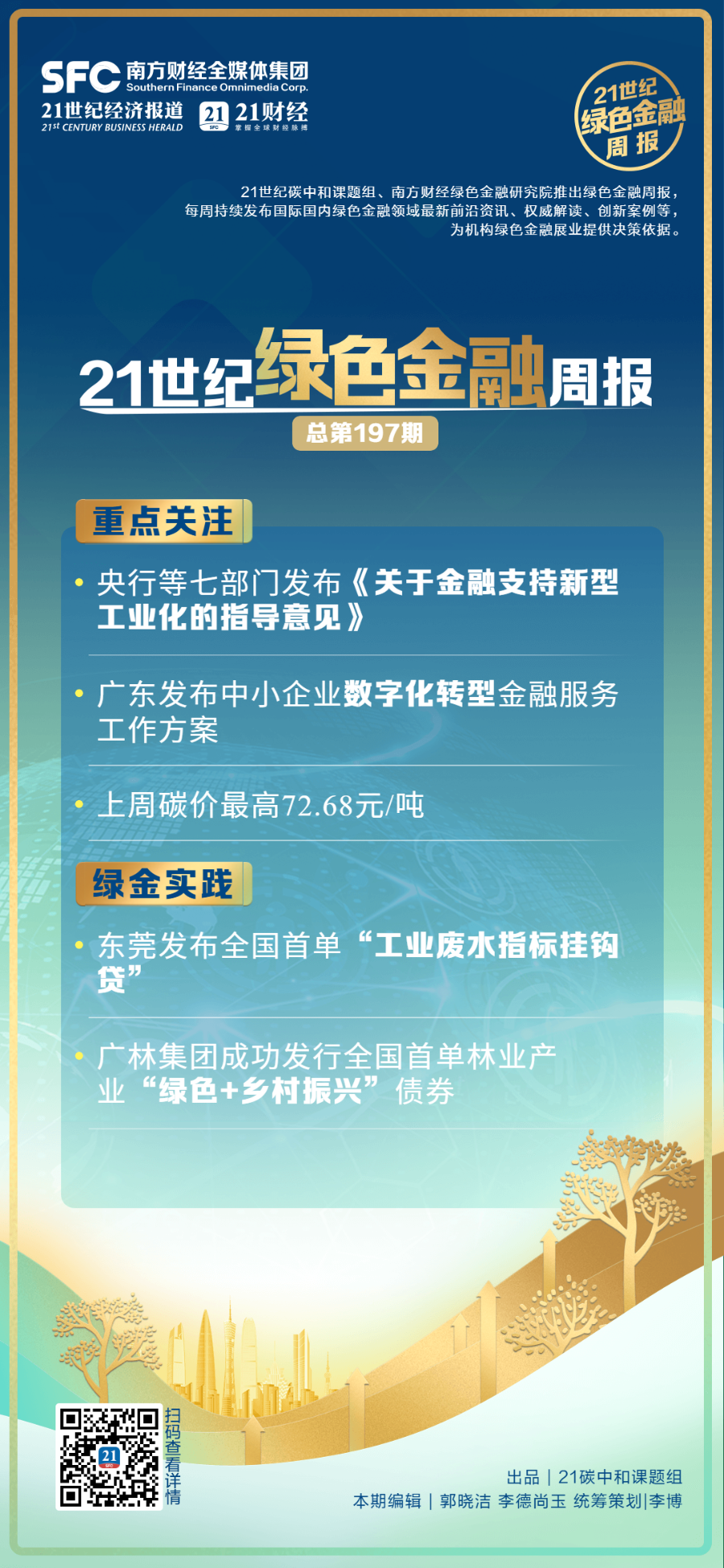 随着绿色金融市场的快速发展,相关的资讯和数据变得越来越丰富。绿色金融周报从宏观视角和机构绿色金融实践等角度,关注绿色金融领域的最新前沿动态,追踪绿色金融市场的最新趋势,为绿色金融相关参与方提供决策依据和参考。