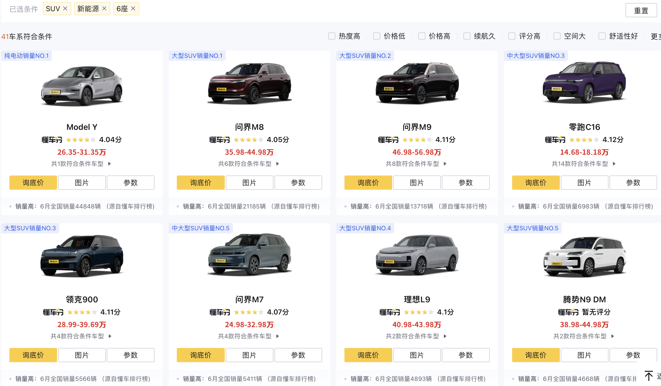 此外,“大三排”纯电SUV还面临混动车型的市场压力。懂车帝的数据显示,6月,销量前8的6座新能源SUV中,有7款以增程、插混版本为主。例如,问界M8在6月卖出超2.1万辆,售价与之相近的蔚来ES8同期销量不到900辆。