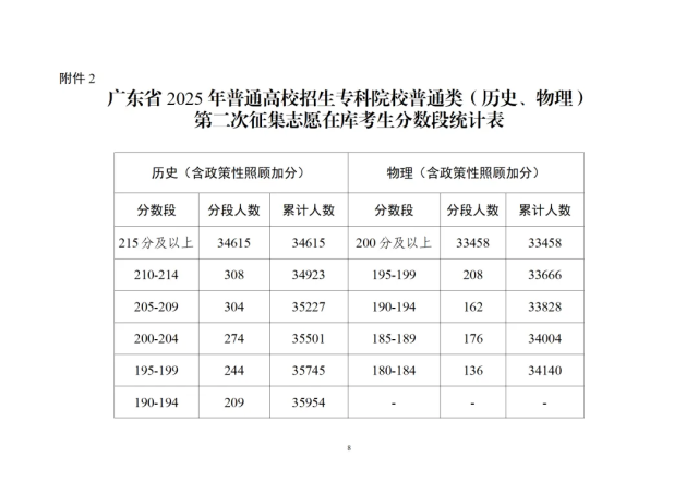 据广东省教育考试院发布,根据第一次征集志愿录取情况,我省专科批次普通类、体育类、艺术类(含音乐类、舞蹈类、美术与设计类)尚有部分缺额计划。经研究,省招生办决定对专科批次进行第二次(最后一次)征集志愿。