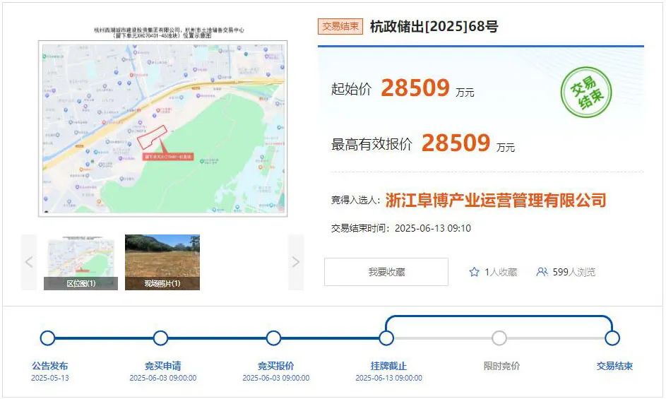 6月中旬,阜博集团全资子公司,浙江阜博产业,以2.85亿元总价,竞得杭州西溪谷的一宗商业用地。