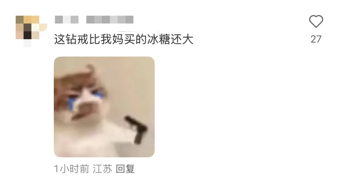 看到消息的网友们在祝福之余,也惊叹这枚钻戒之大。