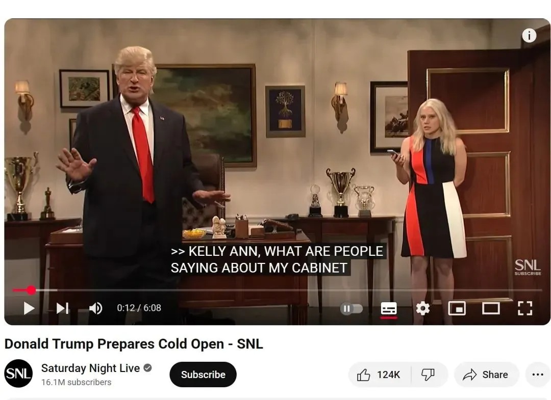 其中流传最广的一段真人画面,实际出自美国NBC电视台制作的一档综艺节目《周六夜现场》