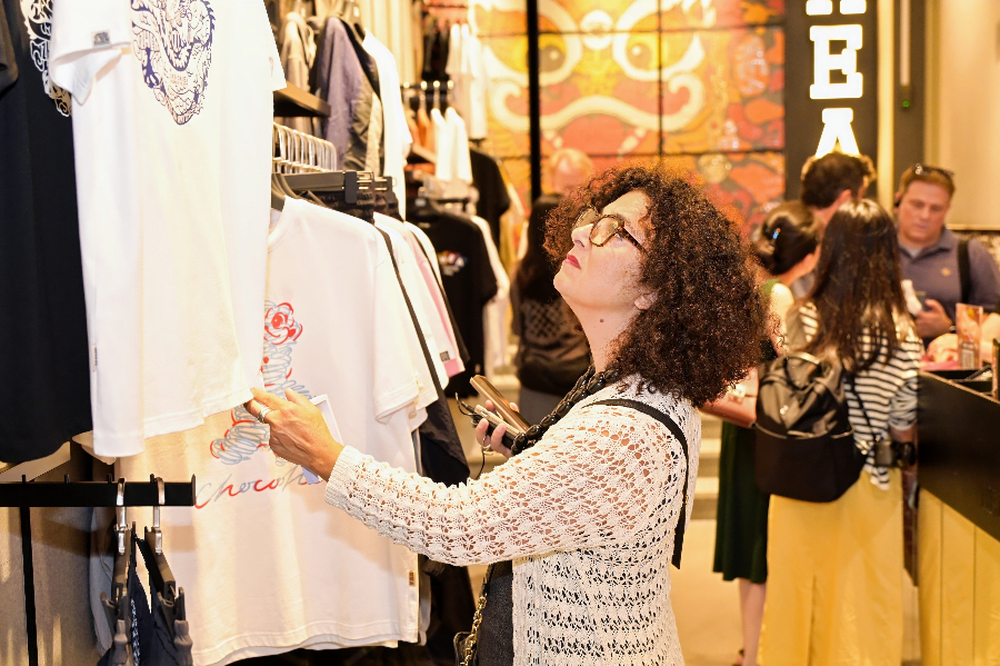 来自意大利的Bertil Butturini惊叹:“石湾陶艺的‘烟火气’与国际潮流的‘先锋性’碰撞出奇妙火花,这正是跨界创新的核心密码。”海外艺术家Alex一口气购买了九件醒狮服饰。Foo Entertainment AG首席运营官兼创意总监Chris同样对岭南国潮文创服饰情有独钟。