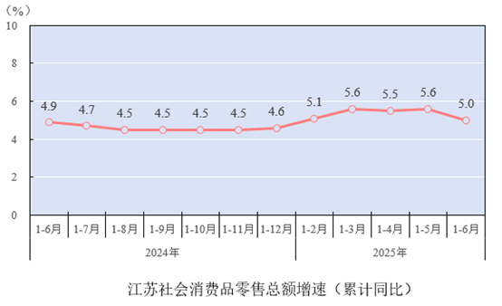 江苏社会消费品零售总额增速统计数据,图源:江苏省统计局网站