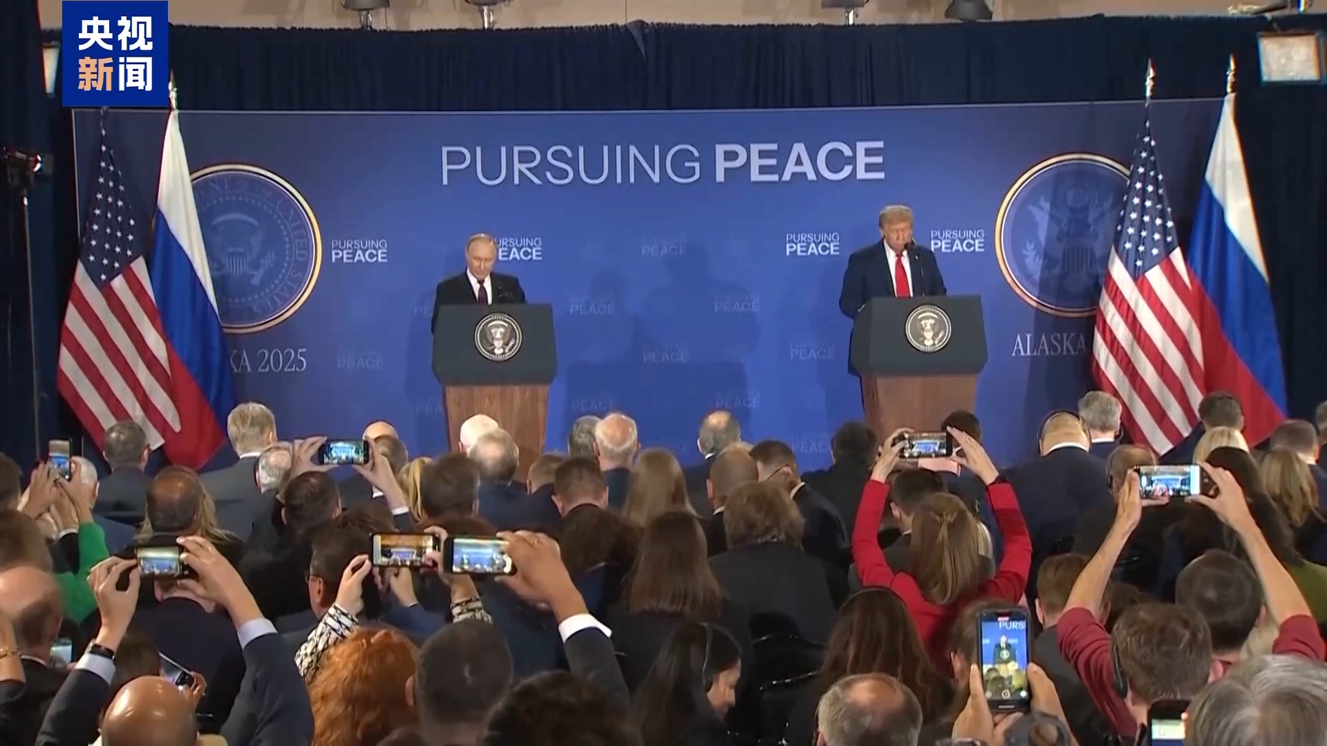 当地时间15日,美国总统特朗普和俄罗斯总统普京在美国阿拉斯加州安克雷奇市埃尔门多夫-理查森联合军事基地举行会晤。会晤持续超过两个半小时。会后双方举行联合新闻发布会。