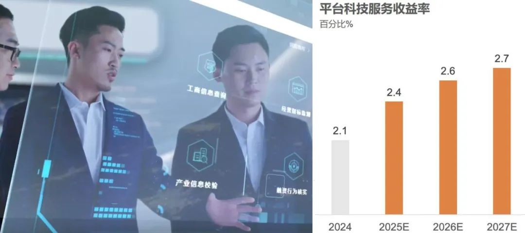 其生意运作的一个关键指标,是平台科技服务收益率,目前在2%,按计划,到2027年将逐步提升至2.7%。