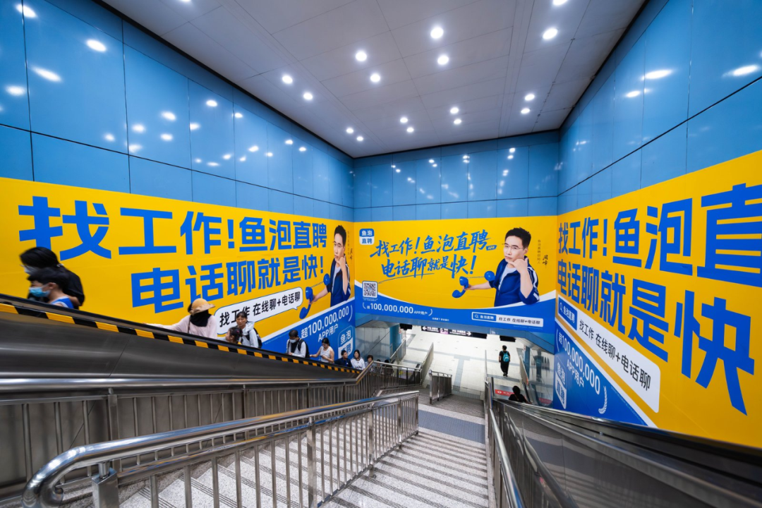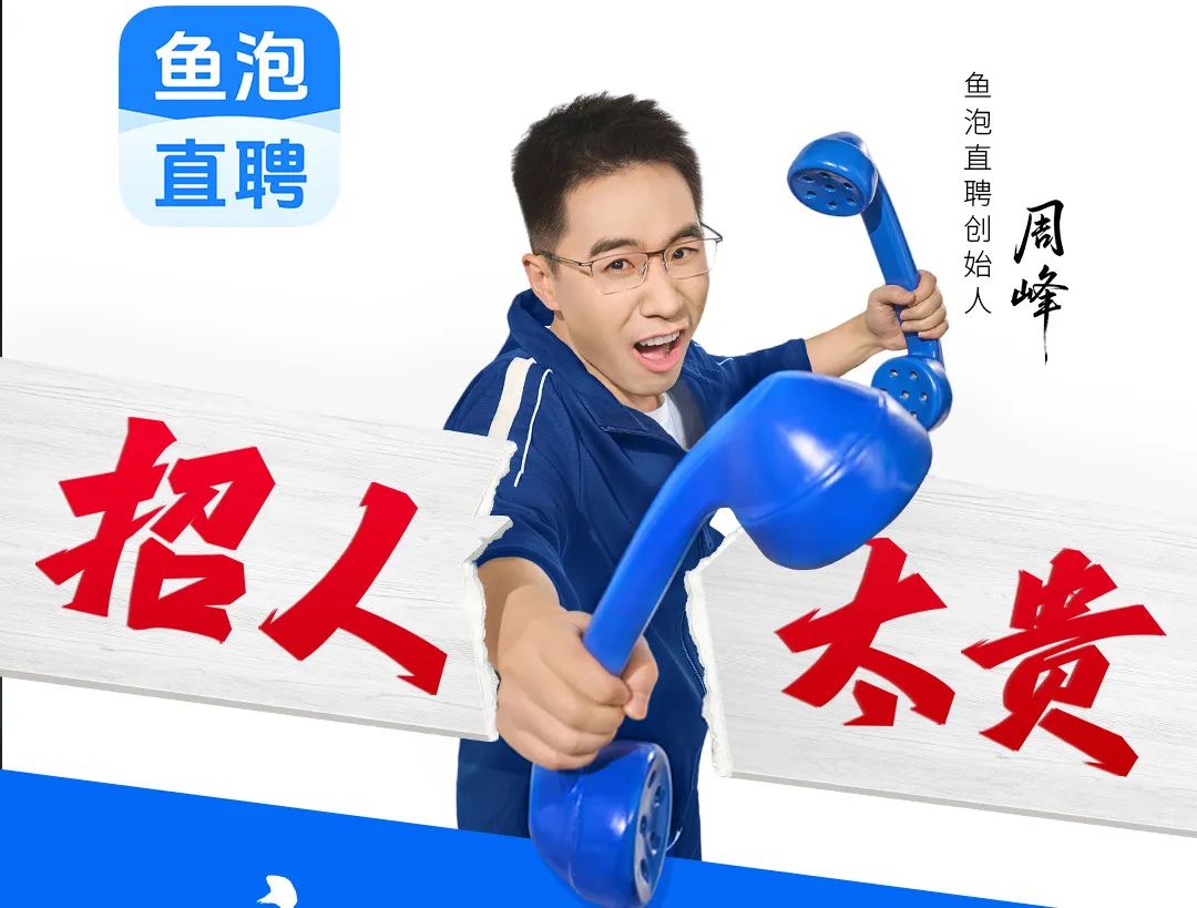 今年,鱼泡直聘杀入白领招聘赛道,周峰高调打响营销战。在北上广深等城市,大规模铺开魔性广告,月投放近亿元,周峰本人也亲自出镜,为自家品牌代言。