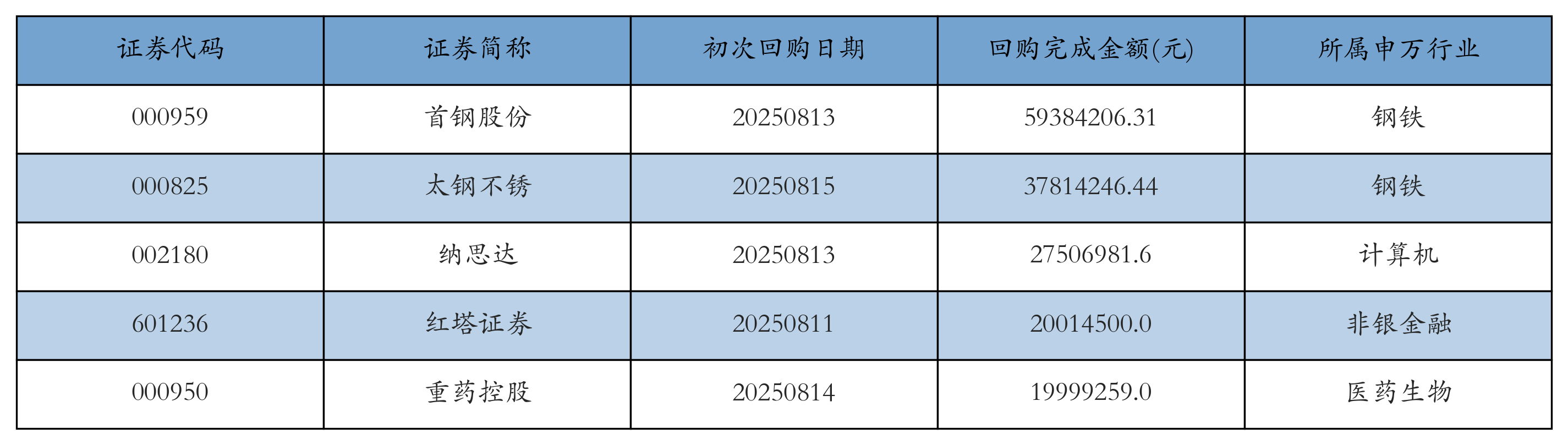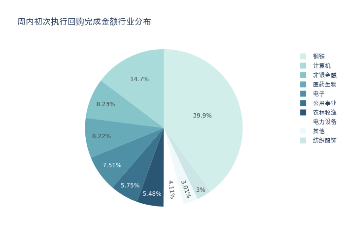 按照初次执行金额所在不同行业分布,金额最高的3个行业分别为:钢铁、计算机、非银金融,详情见下图: